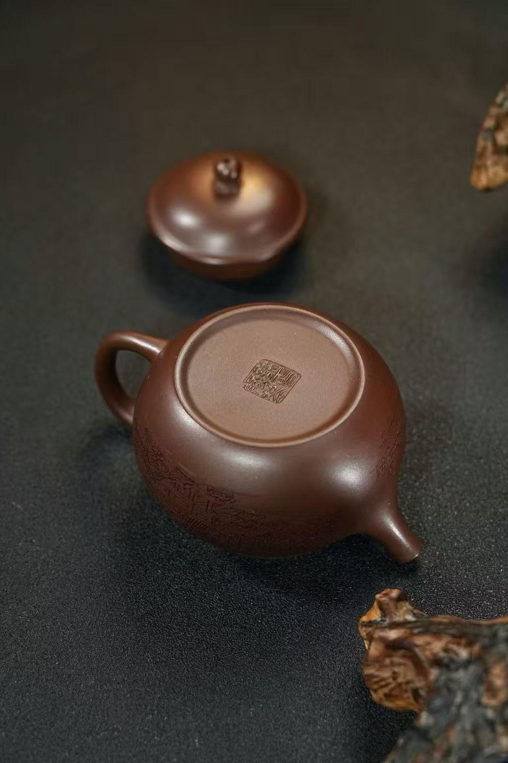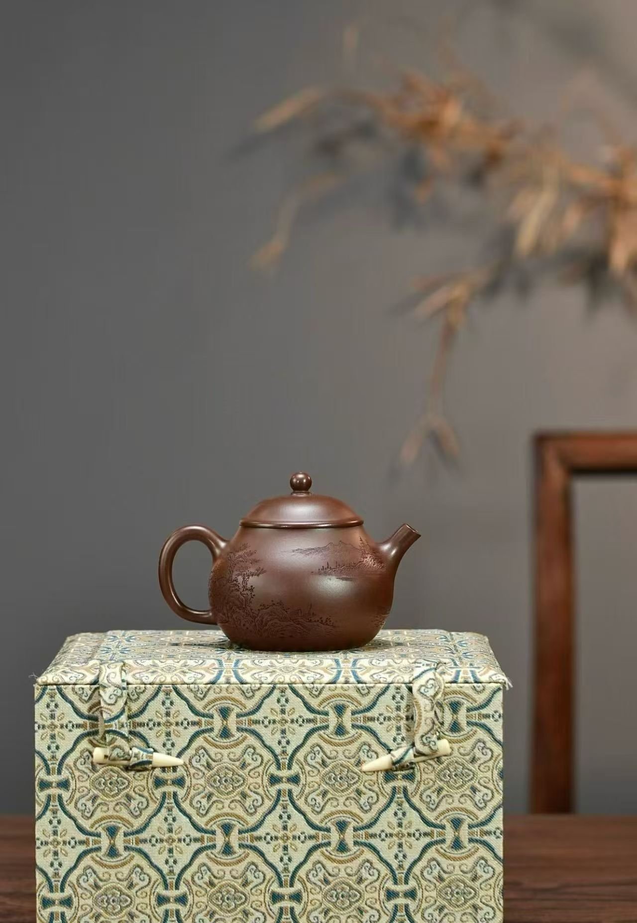 Every stroke embodies movement, depth, and natural poetry — as if mountains shift and clouds drift silently across the surface. The clay has an old-world warmth and texture, giving the piece an earthy, grounded elegance that tea collectors value deeply.