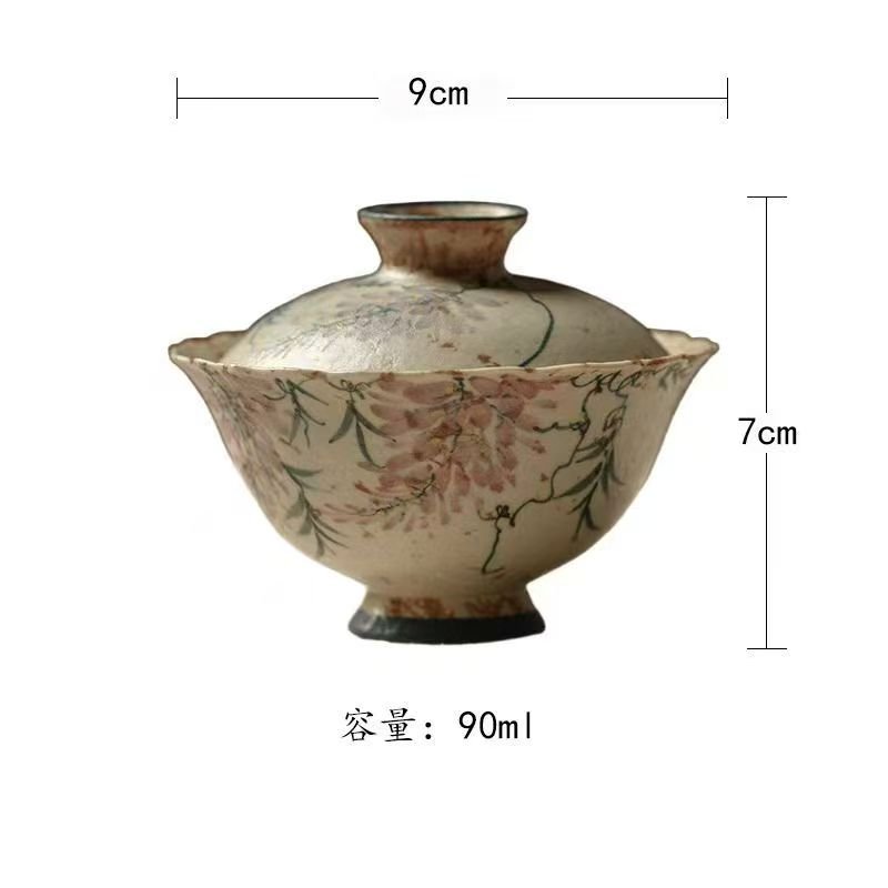 Decoration: Hand-painted wisteria vines and blossoms in traditional Chinese brush style